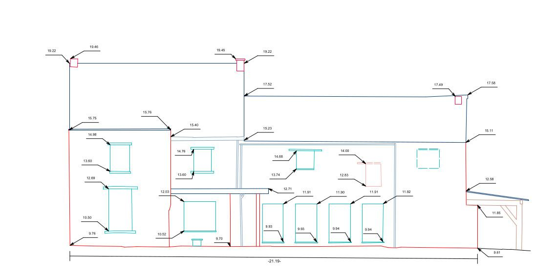 Voor een verbouwingsproject te Wichelen hebben wij voor Marcel Architecten het perceel met gebouwen in kaart gebracht.